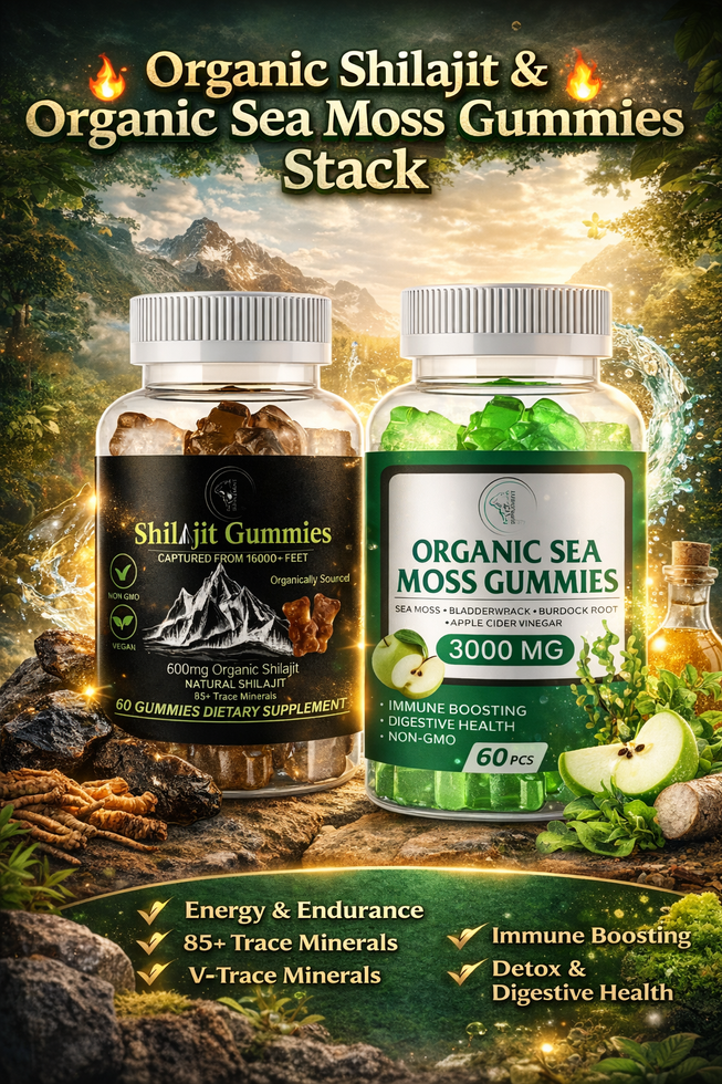 Power your body and mind with this premium daily wellness stack, combining Pure Ashwagandha KSM-66 Gummies and Organic Shilajit Gummies. Ideal for gym-goers, active lifestyles, and anyone looking to support stress control, energy, stamina, and overall performance.